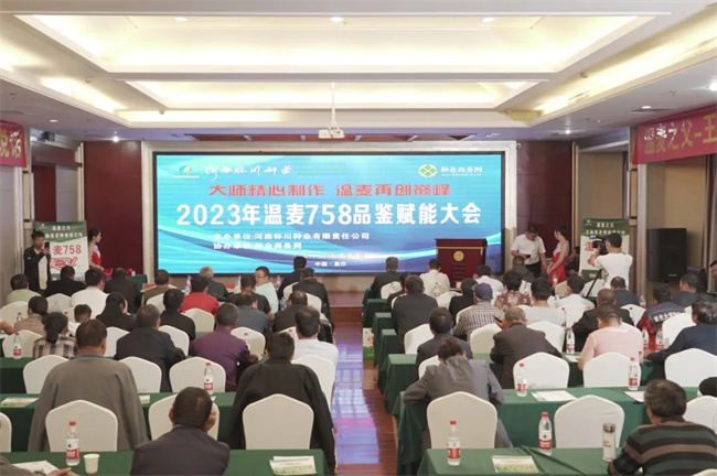懷川種業(yè)首席育種家宋世宗老師分享溫麥758亮點突出,田間表現(xiàn)綜合優(yōu)勢明顯等特點。分蘗力強,成穗率高的半冬性偏早熟品種;畝穗數(shù)42萬—50萬穗,平均穗粒數(shù)50粒左右,穗大粒多,灌漿速度快;千粒重高,三年全省試驗示范,45.5—45.7克。綜合抗性好,根部潔白,無紋枯、莖腐,高抗倒春寒,在今年倒春寒嚴重情況下,溫麥758無死穗、不結(jié)實穗發(fā)生,株高適中,莖稈粗壯,基部節(jié)間短、硬實,高抗倒伏,產(chǎn)量高,品種好,好賣糧。