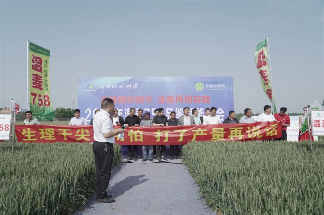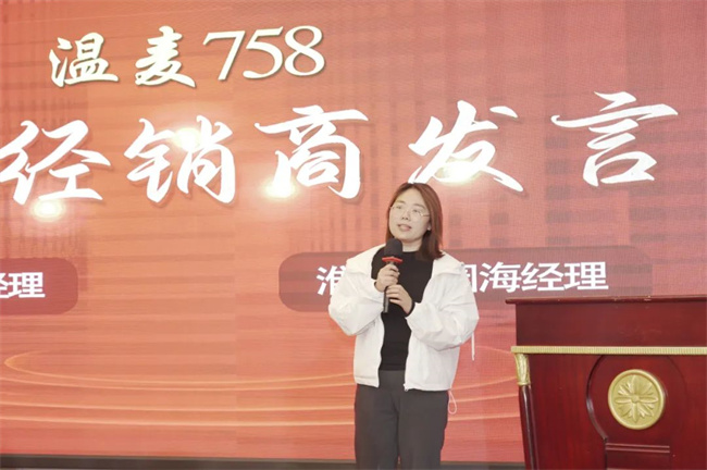 生產(chǎn)、繁育部葛可可經(jīng)理對溫麥758繁種情況做分享。據(jù)介紹,三年來,溫麥758在各地表現(xiàn)很亮眼,株高適中,分蘗強,成穗高,穗大、籽粒飽滿,產(chǎn)量三要素協(xié)調(diào),豐產(chǎn)穩(wěn)產(chǎn)表現(xiàn)非常突出。種植大戶反饋,產(chǎn)量非常喜人,對溫麥758抗病、抗倒的優(yōu)秀表現(xiàn)非常認可,對產(chǎn)量創(chuàng)造的高收益非常滿意。并表示,公司將一如既往地嚴把種子質(zhì)量關(guān),堅決打造一流種子品質(zhì)!