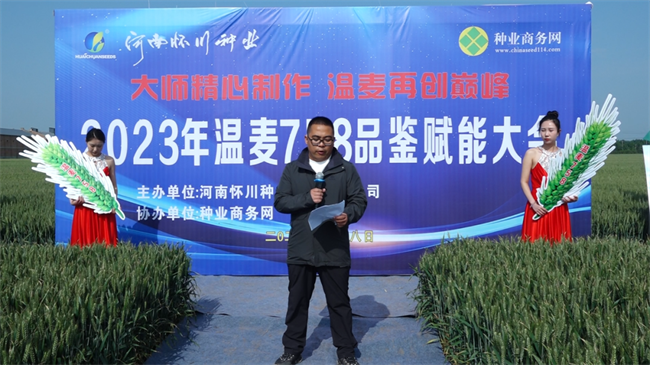 5月8日,河南懷川種業(yè)責(zé)任有限公司(以下簡稱懷川種業(yè))小麥品種展示田彩旗飄揚,以“2023年溫麥758品鑒賦能大會”為主題的小麥新品種觀摩研討會拉開了帷幕。來自全國近300多名經(jīng)銷商、零售商、種糧大戶、農(nóng)戶代表參加觀摩研討會。通過直觀、深入了解公司的小麥新品種和后續(xù)新品系,心中更有底氣。為農(nóng)民增產(chǎn)增收,農(nóng)業(yè)增效,合作伙伴積累更多財富,凝心聚力,共商小麥種業(yè)發(fā)展大計。會議由懷川種業(yè)銷售經(jīng)理王鵬飛主持!