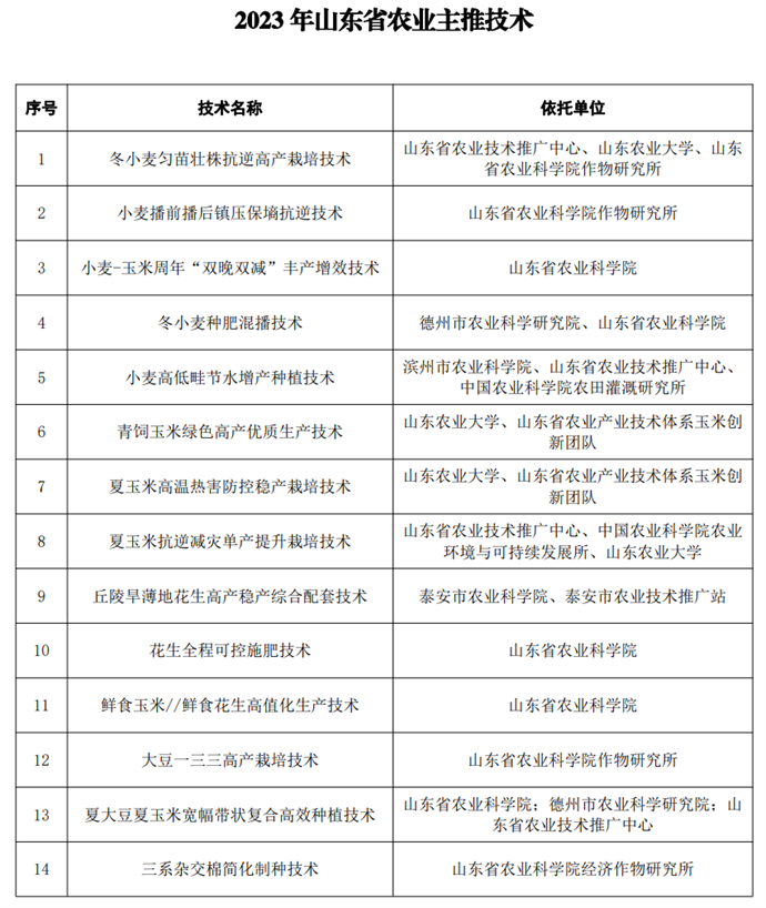 山東推介公布糧油作物主推品種和農(nóng)業(yè)主推技術(shù)