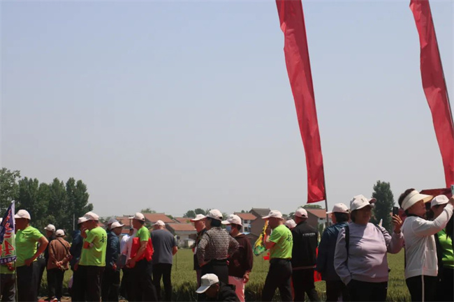 會議期間,參會代表觀摩了金玉滿倉國審麥新麥36和國審麥新麥40的基地,成方連片大田生產(chǎn)長勢情況。當(dāng)前,小麥正處于灌漿關(guān)鍵時(shí)期,也是小麥特征特性充分展示期,代表們通過量株高,測試莖稈抗倒能力,細(xì)數(shù)穗粒數(shù),觀察結(jié)實(shí)情況。對國審麥新麥36和國審麥新麥40的抗凍性,抗倒性,抗病性。三要素協(xié)調(diào)性好,增產(chǎn)潛力大的品種優(yōu)勢有了進(jìn)一步了解和認(rèn)識,心中底氣更足,對下一步推廣銷售工作充滿信心。