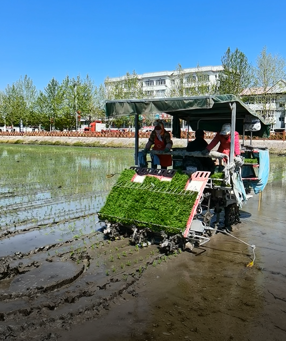 5月4日,伊犁河谷的察布查爾縣開始水稻插秧。