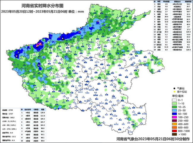 20日12時(shí)至21日6時(shí),全省大部出現(xiàn)陣雨或雷陣雨天氣,西部、西北部、北部部分縣市出現(xiàn)大到暴雨,局部大暴雨,地市平均降水量濟(jì)源51.9毫米、三門(mén)峽38.3毫米、焦作32.6毫米。西部、西北部、東部出現(xiàn)大范圍強(qiáng)對(duì)流,局地伴有短時(shí)強(qiáng)降水、雷暴大風(fēng)等強(qiáng)對(duì)流天氣。全省大部出現(xiàn)5級(jí)以上大風(fēng),其中西部、北中部、東部部分縣市陣風(fēng)7到8級(jí),局部9到11級(jí)。