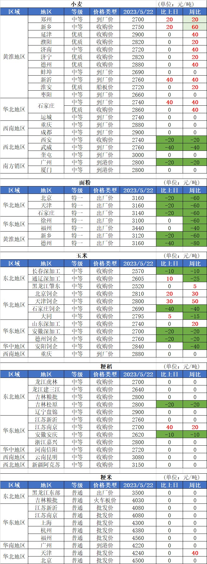 1、5月22日小麥價(jià)格繼續(xù)小幅上漲,漲幅0.5分-2分;離新麥大面積收割僅剩一周時(shí)間,這一周的天氣將決定新麥的產(chǎn)量與質(zhì)量,市場(chǎng)將重點(diǎn)關(guān)注。