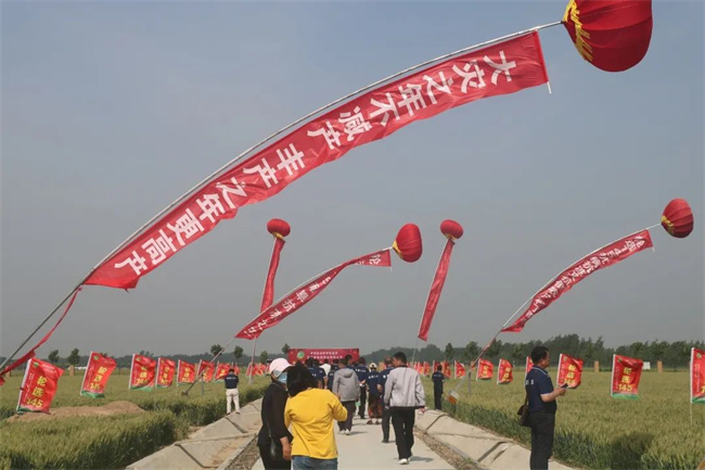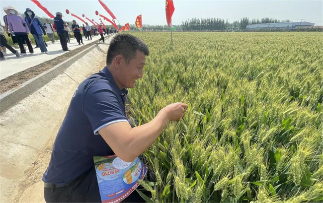 會(huì)議期間,參會(huì)嘉賓觀摩了輪選145展示地塊,聽(tīng)取了技術(shù)人員對(duì)播期、播量及田間管理技術(shù)措施介紹,認(rèn)真查看了輪選145目前籽粒灌漿情況,丈量了株高和估測(cè)了大田群體。均表示,對(duì)輪選145株高低,莖稈粗壯,莖基部節(jié)間短而且硬實(shí),抗倒強(qiáng);群體大,產(chǎn)量三要素協(xié)調(diào),增產(chǎn)潛力大。而且到目前為止,輪選145田間無(wú)任何死穗、白穗等綜合性狀優(yōu)勢(shì)感到非常滿意。