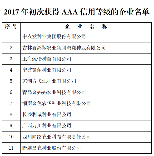 附件:2017年初次獲得AAA信用等級(jí)的企業(yè)名單