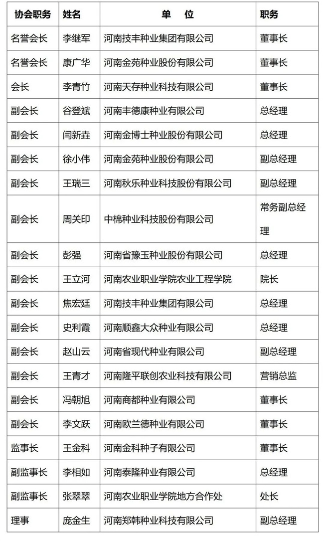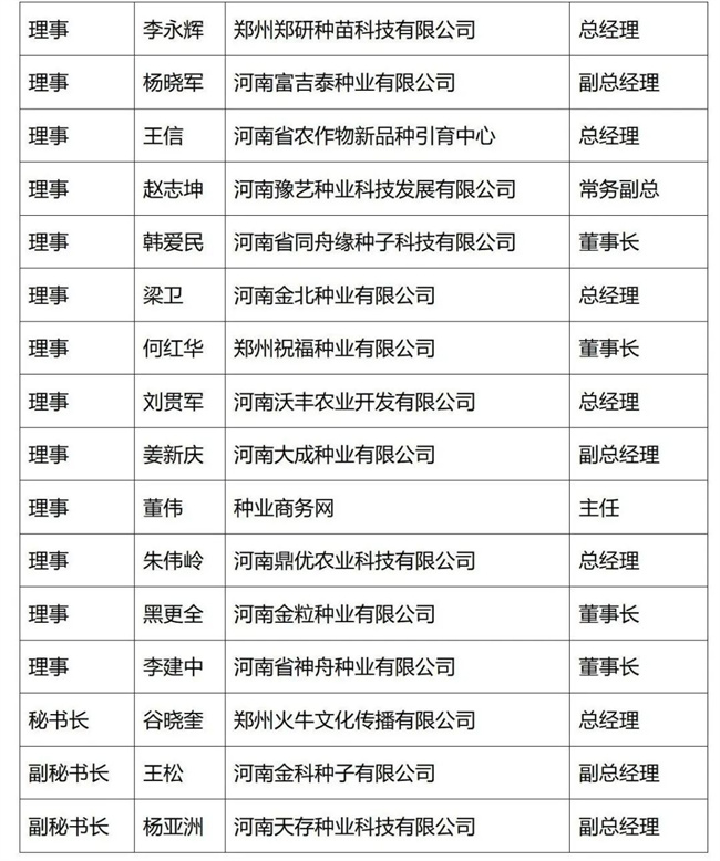 大會選舉產(chǎn)生了第七屆理事會、監(jiān)事長及秘書長。鄭州市種子協(xié)會第七屆理事會名單如下: