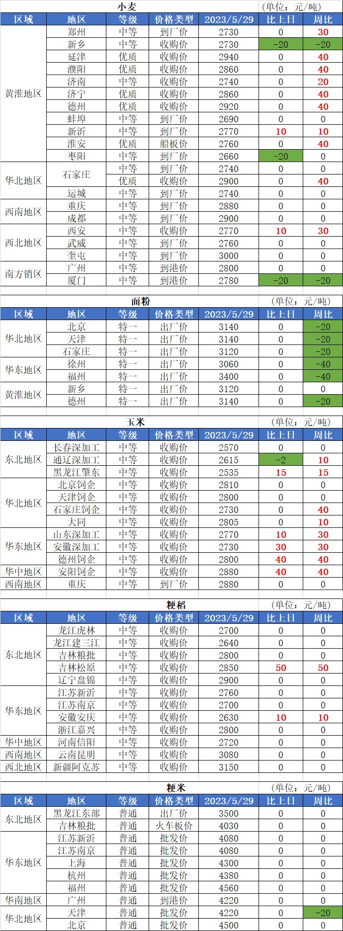 2、5月29日國內(nèi)玉米價格小幅震蕩,其中:東北地區(qū)、南北港口玉米價格基本穩(wěn)定,華北地區(qū)玉米價格小幅波動,變化幅度10-20元/畝,南方銷區(qū)玉米價格局部下跌,跌幅10-20元/畝。