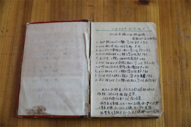 白世祥說,為了提高單產(chǎn)、提高產(chǎn)量,這個筆記本詳細(xì)記錄了當(dāng)時對于秧苗成長過程的觀察。在袁隆平的指導(dǎo)下,畝產(chǎn)多數(shù)超過千斤。