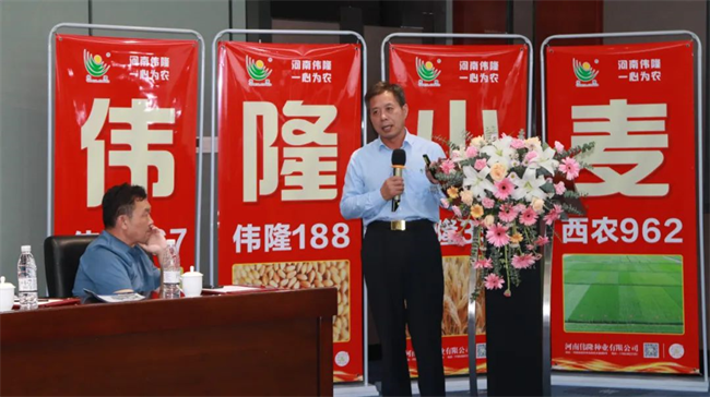 陜西楊凌偉隆農(nóng)業(yè)科技有限公司總經(jīng)理徐永林在致辭中介紹,為加快小麥新品種推廣應(yīng)用,擴大“偉隆”系列小麥品種在黃淮海麥區(qū)的影響力,促進農(nóng)業(yè)增效,農(nóng)民增收,保障國家糧食安全,特成立由陜西楊凌偉隆農(nóng)業(yè)科技有限公司控股的河南偉隆種業(yè)有限公司。