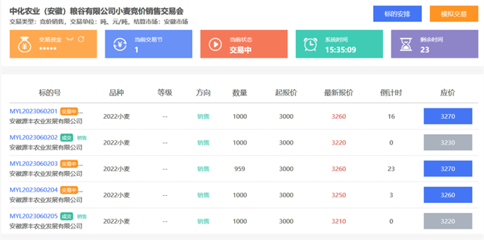 (4)6月2日中儲糧安徽分公司(合肥庫)競價采購2023年小麥8000噸,合肥底價2640元/噸,阜陽底價2700元/噸,全部流拍。