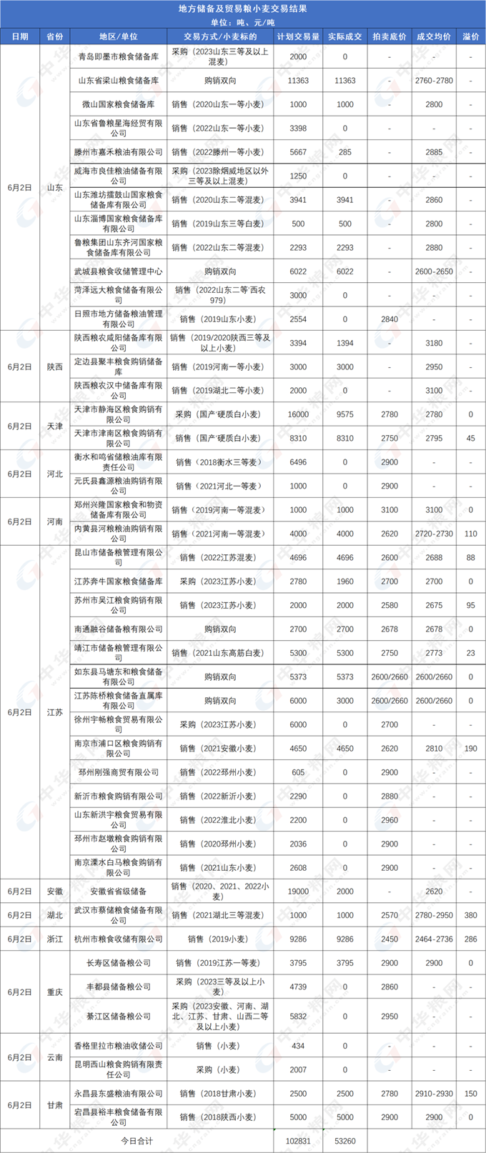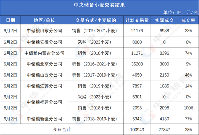 圖2:6月2日地儲小麥/貿易糧交易結果
