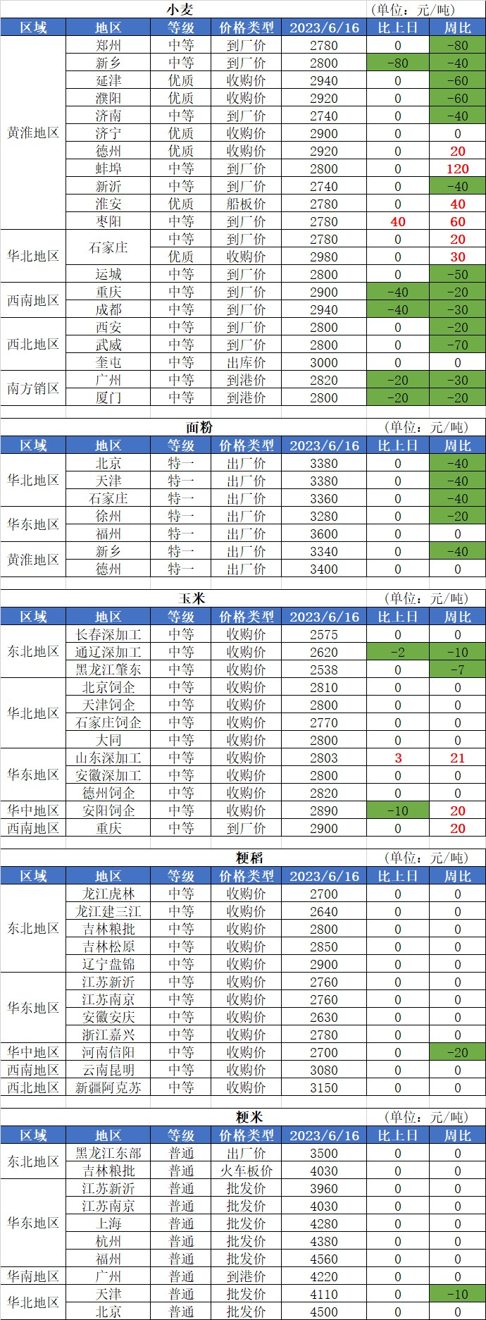 2、6月16日國內玉米價格穩(wěn)中有漲,其中:東北地區(qū)玉米價格基本穩(wěn)定;南方銷區(qū)、南北港口、山東地區(qū)玉米價格基本穩(wěn)定,局部價格上漲,漲幅10-40元/噸;華北地區(qū)玉米價格基本穩(wěn)定,局部價格小幅下跌,跌幅4-10元/噸。