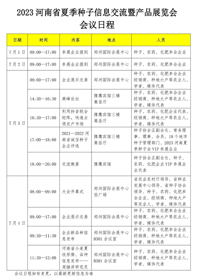 2023河南省夏季種子信息交流暨產(chǎn)品展覽會將于7月3日—4日在鄭州國際會展中心召開。