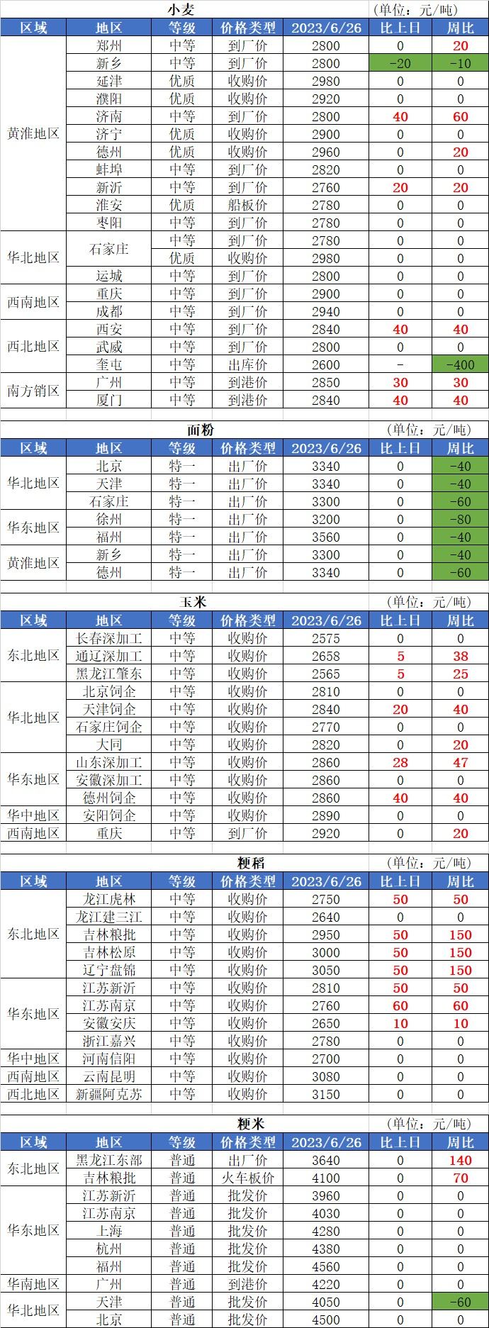 2、6月26日國內(nèi)玉米價格穩(wěn)中有漲,其中:南方銷區(qū)玉米價格基本穩(wěn)定;東北地區(qū)、華北地區(qū)、山東地區(qū)、南北港口玉米價格基本穩(wěn)定,局部價格小漲,漲幅10-20元/噸。