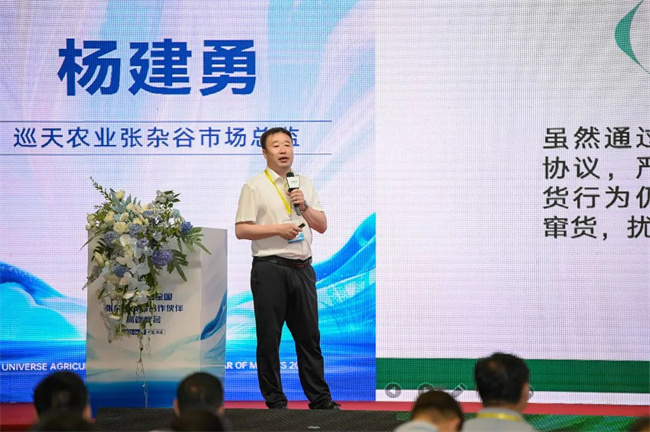▲巡天農(nóng)業(yè)張雜谷市場(chǎng)總監(jiān)楊建勇作工作報(bào)告