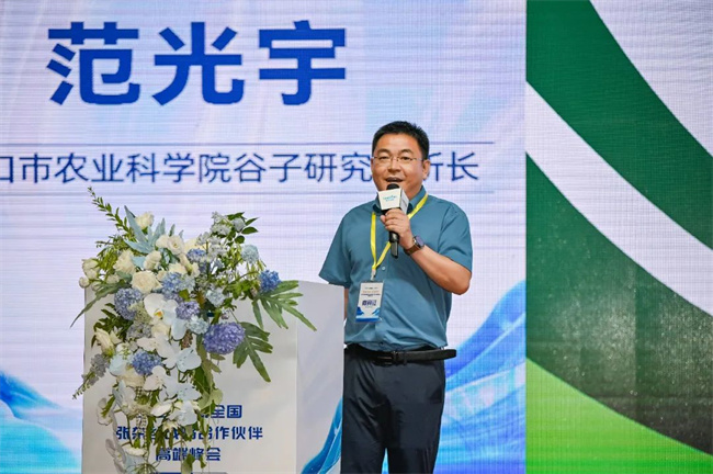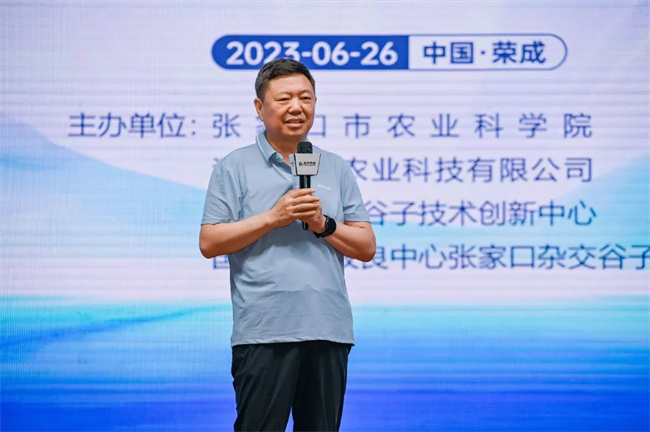 ▲張家口市農(nóng)業(yè)科學(xué)院谷子研究所所長(zhǎng)、國(guó)家谷子高粱產(chǎn)業(yè)體系雜優(yōu)崗位專家范光宇研究員作工作報(bào)告
