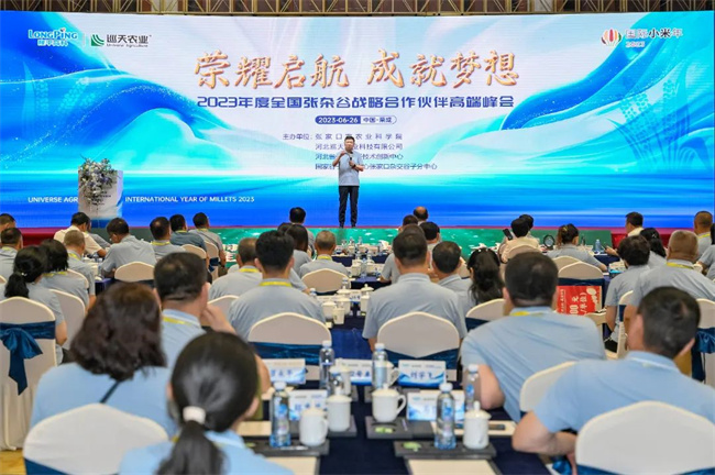 張家口市農(nóng)業(yè)科學(xué)院副院長(zhǎng)王曉明首先致歡迎辭。王院長(zhǎng)對(duì)本年度巡天農(nóng)業(yè)張雜谷推廣所取得的優(yōu)異成績(jī)表示祝賀,對(duì)全體戰(zhàn)略合作伙伴為張雜谷特色富農(nóng)產(chǎn)業(yè)高質(zhì)量發(fā)展作出的積極貢獻(xiàn)表示感謝。他建議張雜谷推廣的下一步思路要以“2023國(guó)際小米年”主題慶?;顒?dòng)為契機(jī),進(jìn)一步整合政府、科研、企業(yè)、銀行、保險(xiǎn)、農(nóng)民等各層級(jí)優(yōu)勢(shì)資源,實(shí)現(xiàn)張雜谷特色產(chǎn)業(yè)在更高層面上的發(fā)展,把張雜谷品種強(qiáng),提升至谷子產(chǎn)業(yè)強(qiáng)、地方經(jīng)濟(jì)強(qiáng)、國(guó)家種業(yè)強(qiáng)!