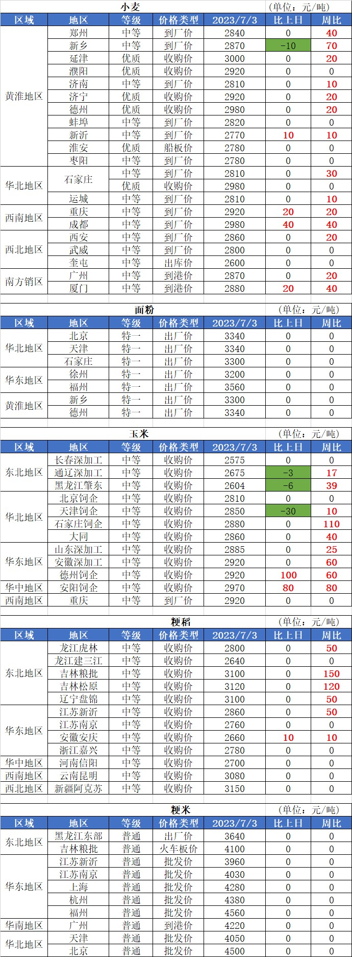 2、7月3日國(guó)內(nèi)玉米價(jià)格震蕩偏強(qiáng),其中:華北地區(qū)、南方銷區(qū)玉米價(jià)格基本穩(wěn)定;東北地區(qū)、山東地區(qū)玉米價(jià)格基本穩(wěn)定,局部?jī)r(jià)格小幅震蕩,漲幅10-40元/噸。