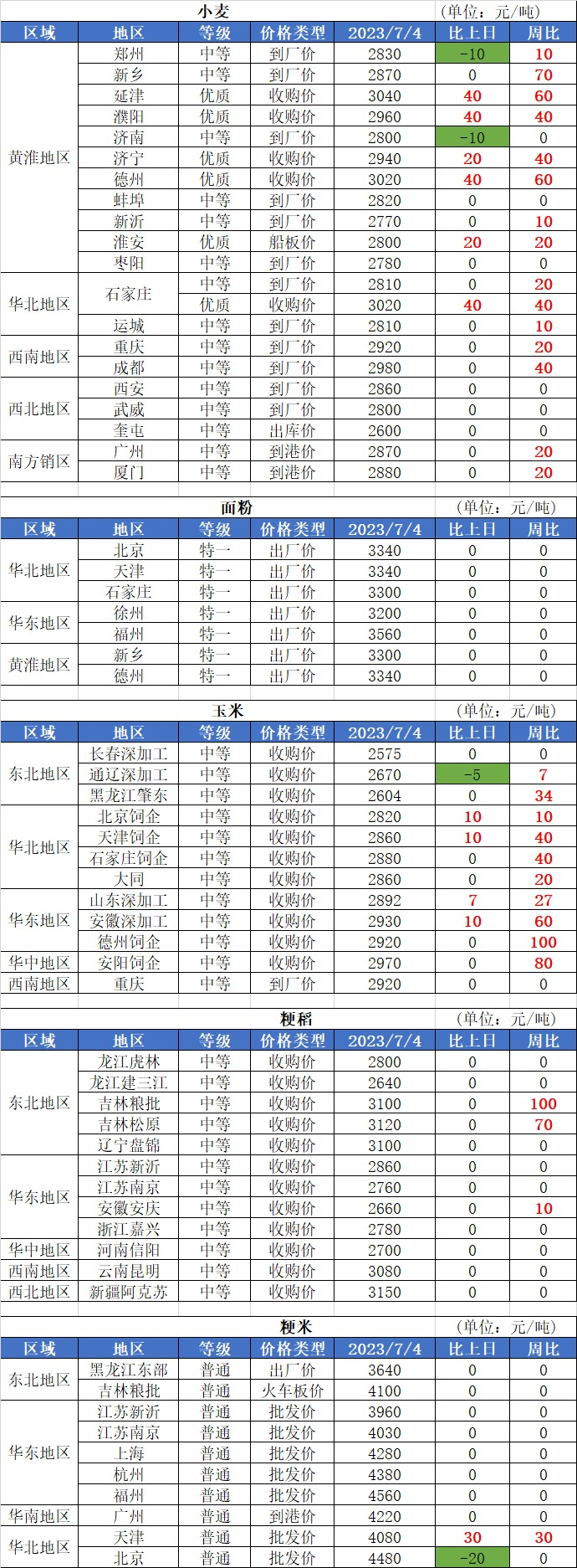 2、7月4日國(guó)內(nèi)玉米價(jià)格小幅偏強(qiáng),其中:華北地區(qū)、東北地區(qū)、南方銷區(qū)、南北港口玉米價(jià)格基本穩(wěn)定;山東地區(qū)玉米價(jià)格基本穩(wěn)定,局部?jī)r(jià)格小幅震蕩,變化幅度6-12元/噸。