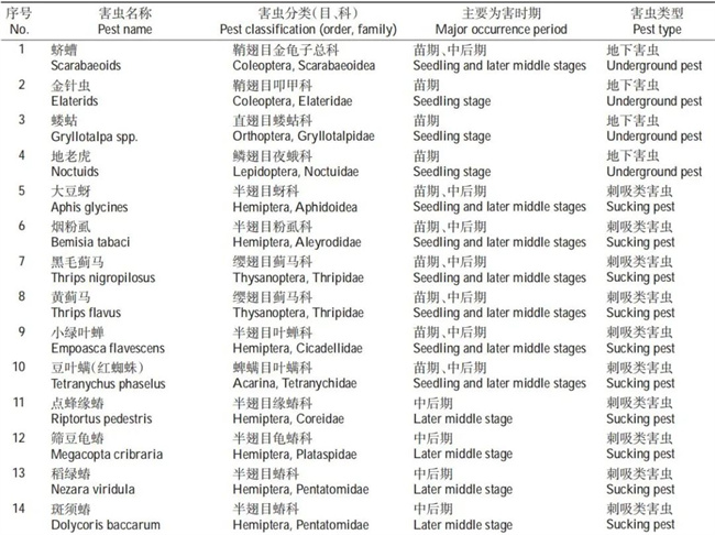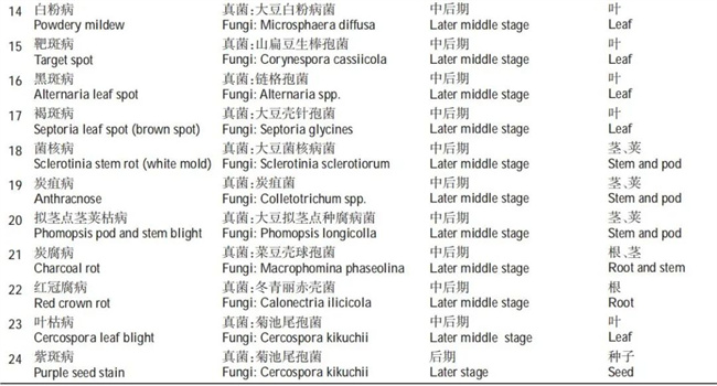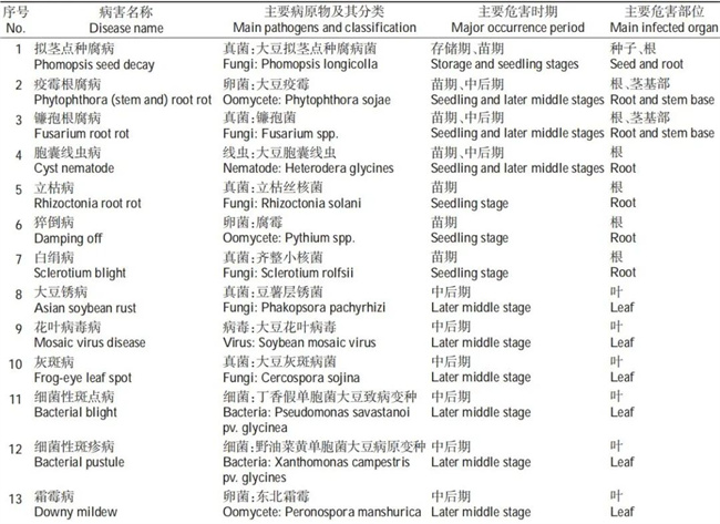中國大豆生產(chǎn)中主要病蟲害的種類