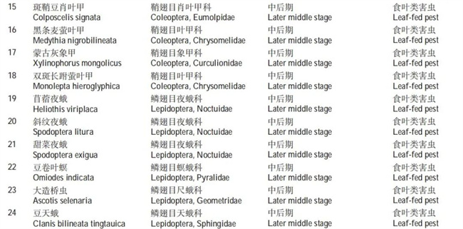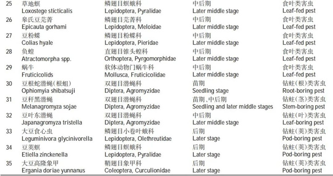 表2 中國大豆生產(chǎn)中的主要蟲害