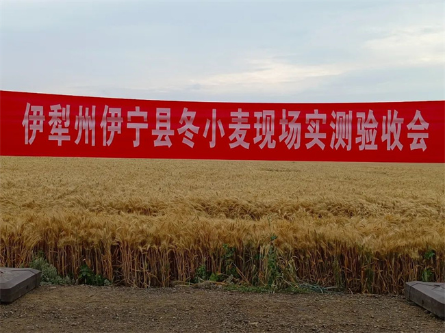 7月10日,新疆伊犁州小麥高產(chǎn)創(chuàng)建示范實(shí)收測產(chǎn)結(jié)果宣布儀式在伊寧縣召開。隨著國家農(nóng)業(yè)農(nóng)村部小麥專家指導(dǎo)組顧問、中國農(nóng)業(yè)科學(xué)院作物科學(xué)研究所研究員趙廣才宣布:“新疆伊犁州伊寧縣喀什鎮(zhèn)其巴圖別克村1300畝連片冬小麥高產(chǎn)示范田實(shí)收面積160.09畝,經(jīng)國家農(nóng)業(yè)農(nóng)村部小麥專家指導(dǎo)組、全國農(nóng)業(yè)技術(shù)推廣服務(wù)中心、國家小麥產(chǎn)業(yè)技術(shù)體系烏魯木齊綜合試驗(yàn)站、新疆農(nóng)業(yè)科學(xué)院糧食作物研究所、伊犁州農(nóng)科所、伊犁州農(nóng)科所小麥研究室組成的高產(chǎn)創(chuàng)建測產(chǎn)組,嚴(yán)格按照國家小麥高產(chǎn)測產(chǎn)驗(yàn)收辦法,按標(biāo)準(zhǔn)含水率(13%)折算后,小麥平均每畝實(shí)打?qū)嵤諡?82.9公斤,是農(nóng)業(yè)農(nóng)村部認(rèn)定的全國大面積冬小麥單產(chǎn)最高紀(jì)錄。”這一喜訊傳遍天山南北、響徹河谷內(nèi)外……