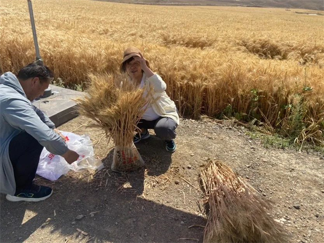 該示范田播種的是新冬52號(hào)品種,具有抗逆性強(qiáng)、高產(chǎn)、穩(wěn)產(chǎn)的特點(diǎn),是出自于石河子農(nóng)業(yè)科學(xué)研究員、首席小麥育種專家洪雪梅研究推出的良繁種子。洪研究員潛心研究小麥新品種30年如一日,致力置身于小麥高產(chǎn)創(chuàng)建工作,先后將自主選育、符合河谷天候及土質(zhì)、創(chuàng)制優(yōu)質(zhì)的新冬41、新冬52、石冬0358、石冬06510等中強(qiáng)筯小麥品種主推在伊犁河谷的小麥高產(chǎn)創(chuàng)建田,以豐產(chǎn)、抗病、優(yōu)質(zhì)且遺傳力的種源,為河谷小麥高產(chǎn)豐收打下了堅(jiān)實(shí)基礎(chǔ)。當(dāng)她與驗(yàn)收專家組一道走進(jìn)高產(chǎn)創(chuàng)建示范田,看著籽粒飽滿的穗子、又大又長的穗頭,欣慰地微笑是她多年繁育小麥新品種犧牲和付出的詮釋。
