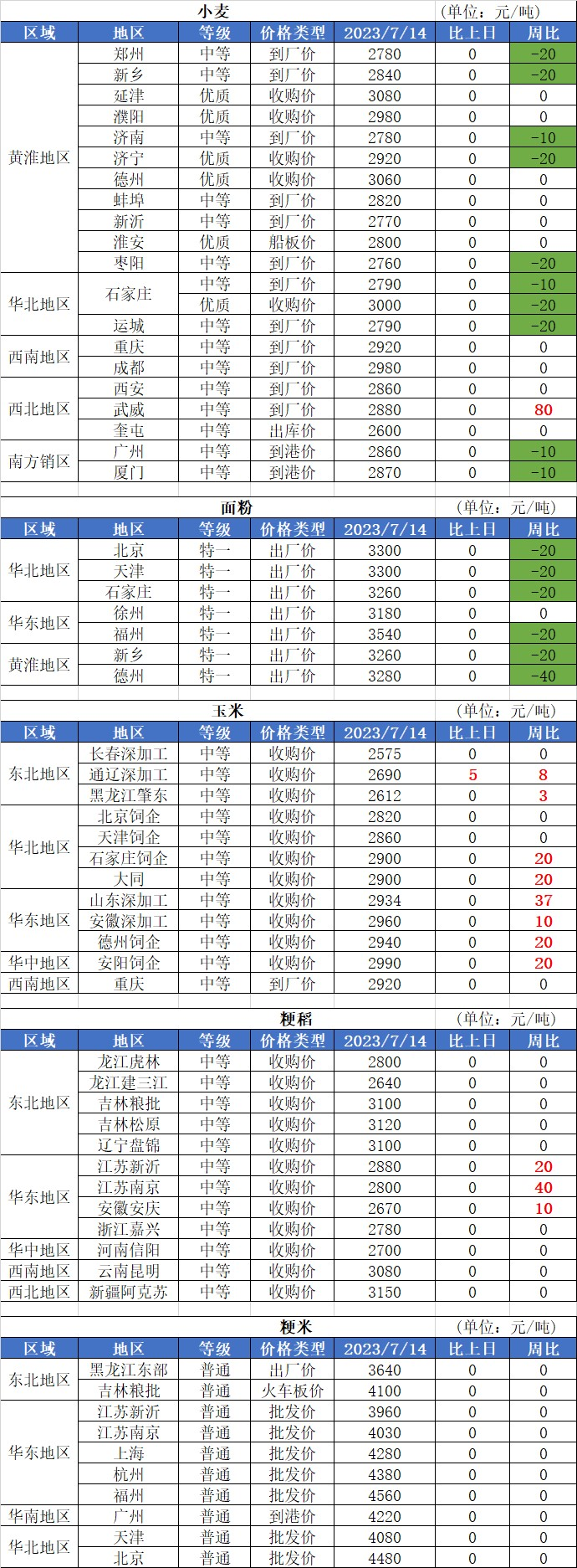 2、7月12日國(guó)內(nèi)玉米價(jià)格局部下跌,其中:南方銷(xiāo)區(qū)玉米價(jià)格基本穩(wěn)定;山東地區(qū)、南北港口、東北地區(qū)玉米價(jià)格基本穩(wěn)定,局部?jī)r(jià)格小幅下跌,跌幅10-30元/噸。