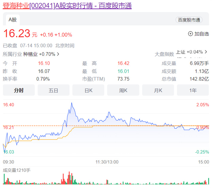 山東登海種業(yè)股份有限公司2005年4月在深圳證券交易所上市,目前市值142.82億元。公司主營業(yè)務(wù)為農(nóng)作物新品種的選育、生產(chǎn)、分裝、銷售等,玉米種子是最主要板塊。