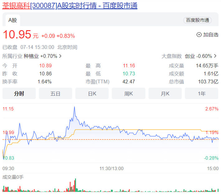 安徽荃銀高科種業(yè)股份有限公司2010年5月在深圳證券交易所上市,目前市值103.73億元。公司“以種業(yè)為核心,農(nóng)業(yè)服務(wù)為延伸,探索和創(chuàng)新農(nóng)業(yè)多元化發(fā)展”,雜交水稻研發(fā)、推廣及海外業(yè)務(wù)規(guī)模均位居全國種子企業(yè)前2位。