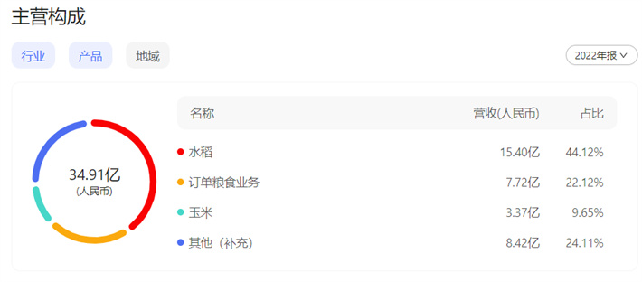 2022年?duì)I收34.91億元,歸母凈利潤2.33億元。其中水稻種子營收達(dá)15.40億元,占比44.12%。2023年1季度歸母凈利潤0.31億元。