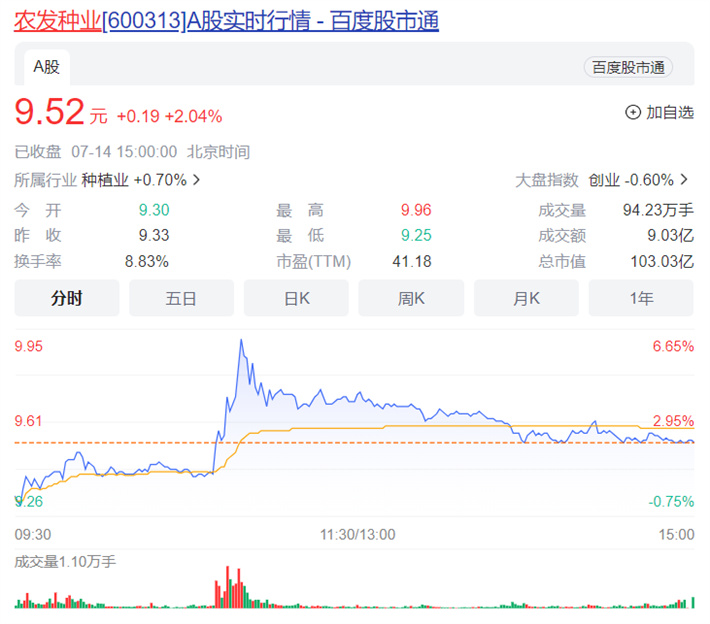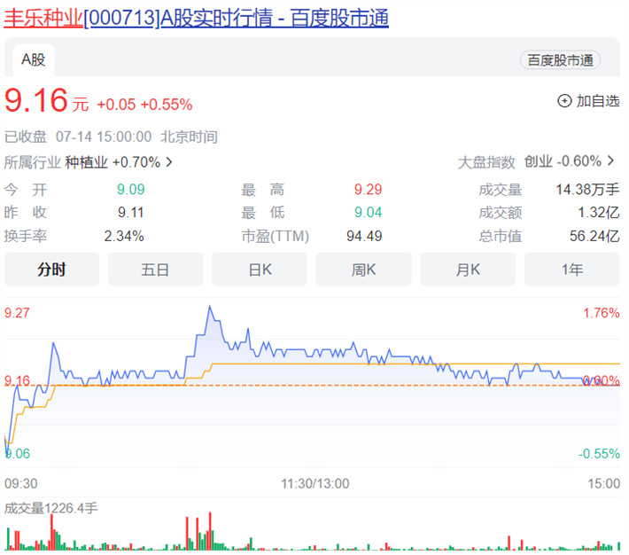 合肥豐樂種業(yè)股份有限公司1997年4月在深圳證券交易所上市,是“中國種業(yè)第一股”,目前市值56.24億元。公司業(yè)務(wù)以種業(yè)和農(nóng)化為主導(dǎo)。