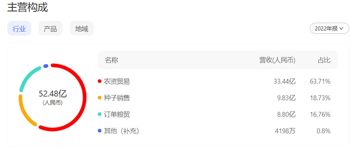 2022年?duì)I收52.48億元,歸母凈利潤2.3億元。其中種子銷售9.83億元,占比18.73%。2023年1季度歸母凈利潤0.39億元。