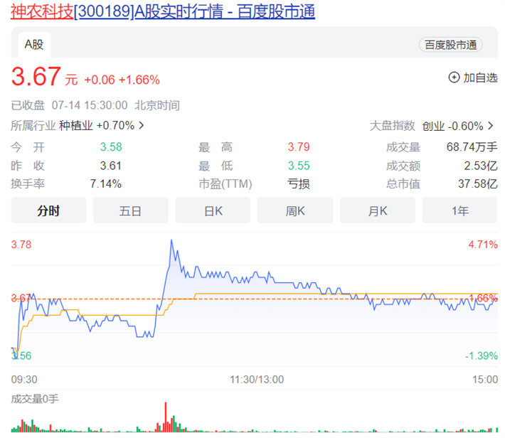 海南神農(nóng)科技股份有限公司2011年3月在深圳證券交易所上市,目前市值37.58億元。種業(yè)是公司主要板塊,涵蓋玉米、水稻、蔬菜種子。2022年?duì)I收1.92億元,歸母凈利潤-0.65億元。2023年1季度歸母凈利潤-0.03億元。