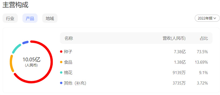2022年?duì)I收10.05億元,歸母凈利潤0.2億元。其中種子營收7.38億元,占比73.5%。2023年1季度歸母凈利潤0.25億元。