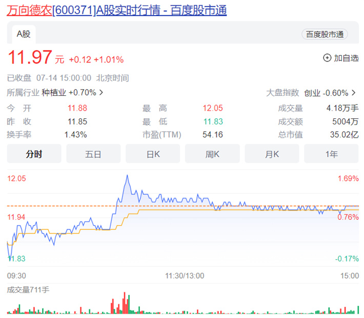 萬向德農(nóng)股份有限公司2002年9月在上海證券交易所正式掛牌上市,目前市值35.02億元。