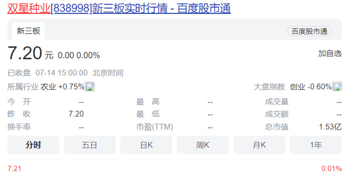 河北雙星種業(yè)股份有限公司司2016年8月在新三板上市,目前市值1.53億元。公司主營業(yè)務(wù)是向日葵、甜瓜、西瓜、非登記蔬菜種子等,2022年?duì)I業(yè)收入5295.57萬元,歸母凈利潤1643.59萬元。