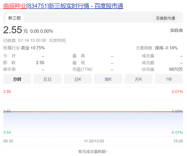 云南曲辰種業(yè)股份有限公司2015年12月掛牌新三板,目前市值6879萬元。公司經(jīng)營范圍包括糧食作物雜交種、常規(guī)種、蔬菜、玉米、花卉種子銷售等,2022年?duì)I業(yè)收入1840.62萬元,歸母凈利潤276.84萬元。