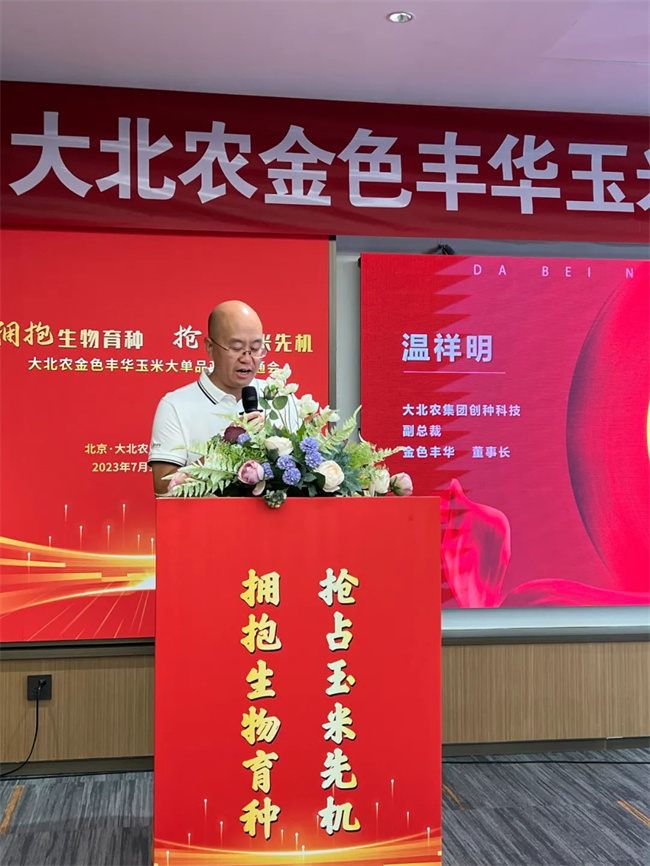 會(huì)上,創(chuàng)種科技副總裁、金色豐華董事長(zhǎng)溫祥明老師在致辭對(duì)各位事業(yè)伙伴的到來表示熱烈歡迎,對(duì)金色豐華事業(yè)的大力支持表示感謝。溫祥明老師首先詳細(xì)介紹了大北農(nóng)集團(tuán)雄厚的發(fā)展基礎(chǔ),并從發(fā)展目標(biāo)、產(chǎn)研合作、市場(chǎng)推廣等方面,闡釋了金色豐華的發(fā)展規(guī)劃。