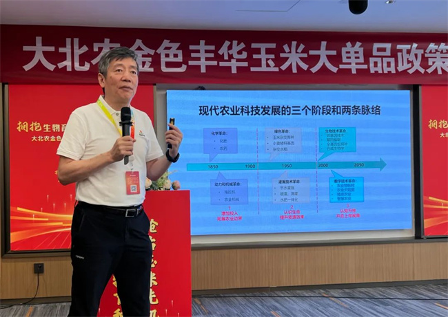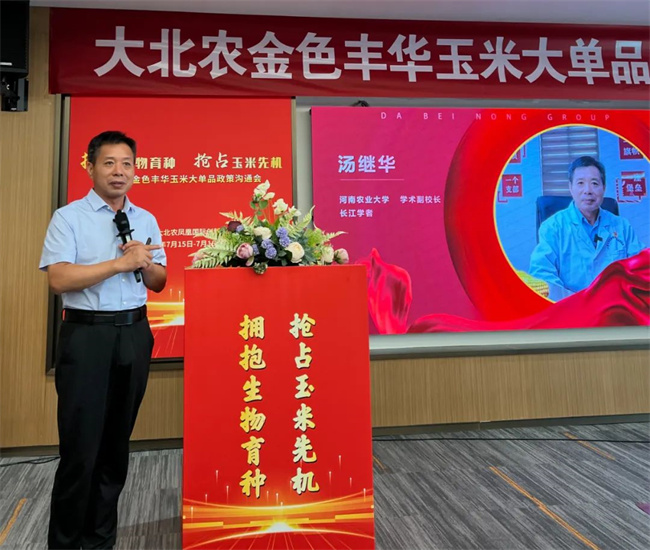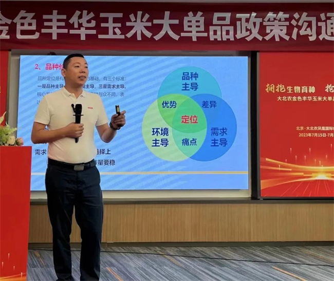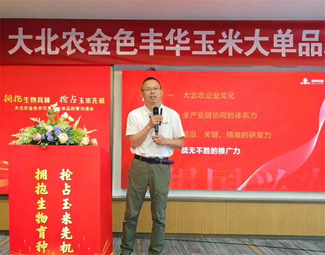 創(chuàng)種科技總裁譚春平老師從文化力、體系力、研發(fā)力、推廣力四個(gè)方面,展現(xiàn)了公司的強(qiáng)勁實(shí)力,號(hào)召事業(yè)伙伴與金色豐華攜手,搶抓大機(jī)遇、實(shí)現(xiàn)大發(fā)展,共創(chuàng)黃淮玉米大事業(yè)。