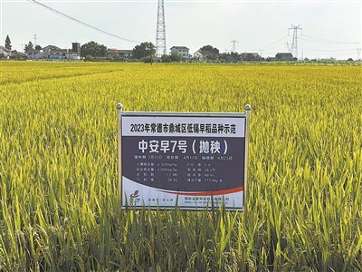 7月12日,全國(guó)早稻產(chǎn)量形勢(shì)分析會(huì)暨低鎘早稻現(xiàn)場(chǎng)觀摩會(huì)在湖南省常德市召開。記者從會(huì)上獲悉,湖南金健種業(yè)科技有限公司聯(lián)合中國(guó)水稻研究所選育的中安早7號(hào)、中安2號(hào)兩個(gè)低鎘早稻品種,在常德市鼎城區(qū)牛鼻灘鎮(zhèn)白洋湖村展開了1112畝的千畝連片示范種植。觀摩會(huì)中,該示范片通過了農(nóng)業(yè)農(nóng)村部水稻專家指導(dǎo)組的現(xiàn)場(chǎng)評(píng)議。在示范片隨機(jī)抽取3塊田實(shí)割測(cè)產(chǎn),稻谷平均畝產(chǎn)563.4公斤。示范現(xiàn)場(chǎng)采集的13個(gè)送檢稻谷樣品結(jié)果顯示,兩個(gè)品種均具有顯著的低鎘特性。
