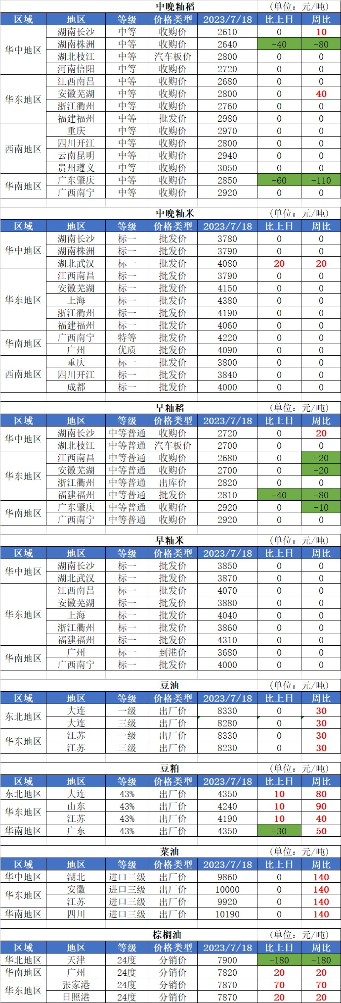 3、7月18日投放政策性稻谷90.06萬噸,實際成交8.46萬噸,成交率9.39%。其中早秈稻成交0.21萬噸,均價2438元/噸;中晚秈稻成交2.8萬噸,均價2497元/噸;粳稻成交5.45萬噸,均價2600元/噸。
