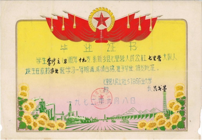 1968年,“七里營人民公社5786農(nóng)業(yè)大學(xué)”正式開學(xué),這是一所模仿延安抗大的辦學(xué)模式,依托各類專家資源,邊生產(chǎn)邊辦學(xué)的大學(xué),縣里親切地稱其為“農(nóng)大”。1971年,19歲的李修立成為這所大學(xué)的第四屆學(xué)生,他如饑似渴地學(xué)習(xí)農(nóng)業(yè)基礎(chǔ)知識,很快就掌握了測產(chǎn)測報、病蟲害防治等實用技術(shù),并開始學(xué)習(xí)撰寫生產(chǎn)總結(jié)、試驗小結(jié)和論文。畢業(yè)后,李修立回到生產(chǎn)隊擔(dān)任技術(shù)員,幫助科學(xué)家落實科學(xué)試驗方案,因勤學(xué)好問、踏實肯干,深得專家們的欣賞。齊兆生等專家把李修立等技術(shù)員看做自己的學(xué)生,經(jīng)常利用業(yè)余時間為他們傳授各類知識,還曾親手為他們搟面條做飯,這種海納百川、平易近人的作風(fēng)深深影響了李修立的一生。
