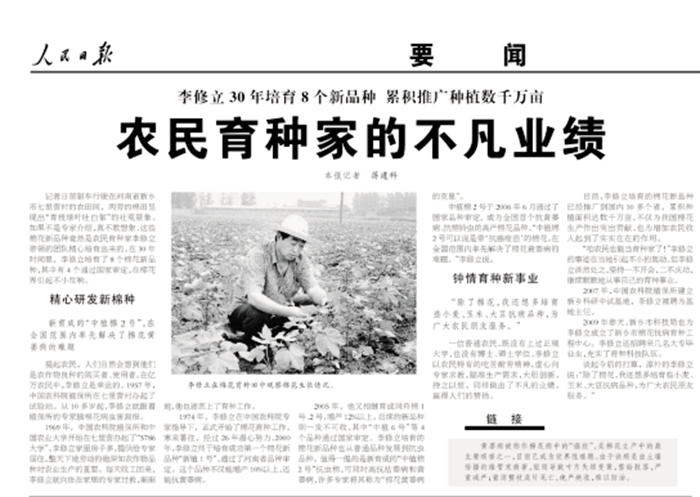《人民日報》關(guān)于李修立的報道