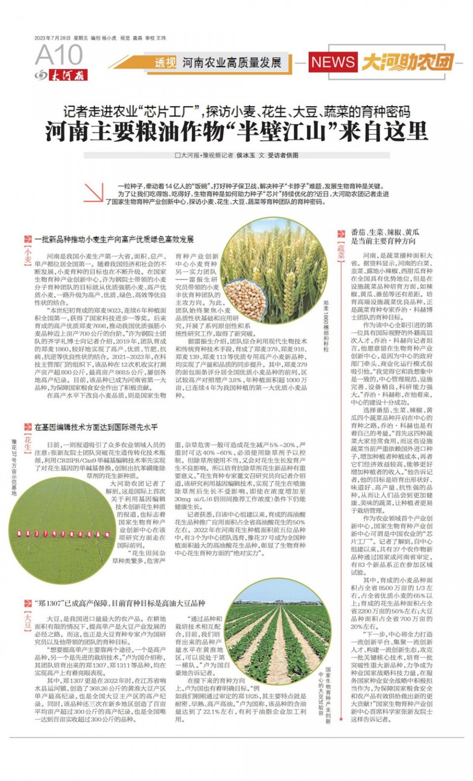 《大河報》,7月28日,A10整版:透視河南農(nóng)業(yè)高質(zhì)量發(fā)展,大河助農(nóng)團(tuán)
