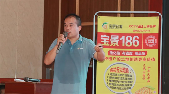 感謝選擇,協(xié)力合作。室內(nèi)交流會(huì)上,河南寶景農(nóng)業(yè)科技有限公司總經(jīng)理高宏偉介紹,寶景186自上市以來,經(jīng)受住了多重惡劣氣候考驗(yàn),其優(yōu)異表現(xiàn)相信各位合作伙伴有目共睹。今年,不僅遇到了春季的低溫天氣,授粉期間又遭遇高溫?zé)岷Γ?,我們可以看到寶?86依然一粒封頂,年年表現(xiàn)優(yōu)秀如一。