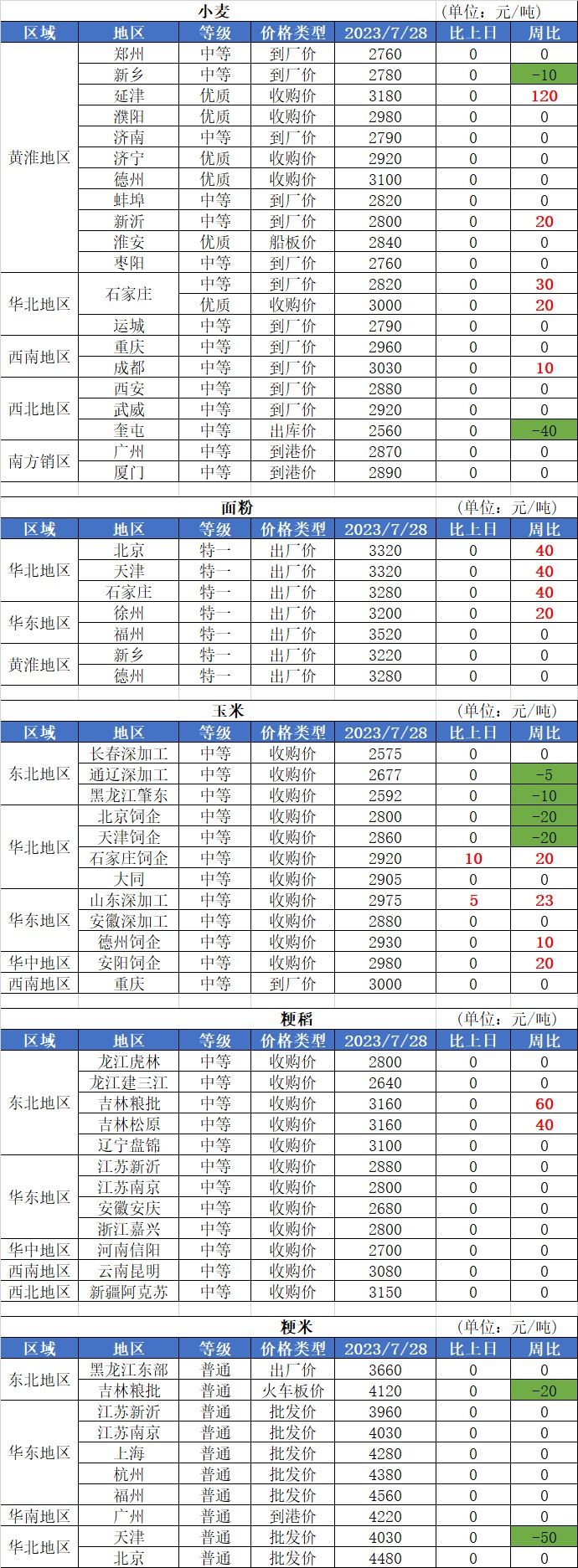 2、7月28日國內(nèi)玉米價格穩(wěn)中有漲,其中:南北港口、東北地區(qū)、南方銷區(qū)玉米價格基本穩(wěn)定;華北地區(qū)、山東地區(qū)玉米價格基本穩(wěn)定,局部價格上漲,漲幅10-40元/噸。