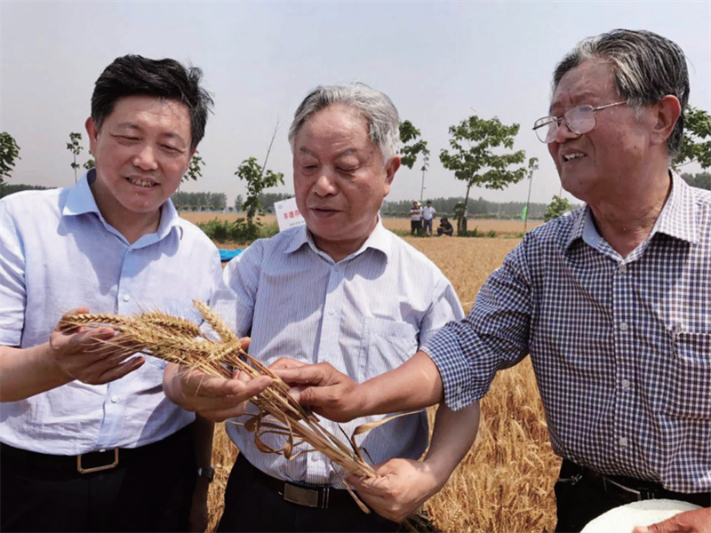 這個(gè)階段,鄭天存改變以往以“高產(chǎn)、穩(wěn)產(chǎn)”為主要目標(biāo)的育種理念,把培育高產(chǎn)與優(yōu)質(zhì)相結(jié)合的小麥新品種作為新征程的“制高點(diǎn)”,打破了長(zhǎng)期困擾小麥育種“高產(chǎn)不優(yōu)質(zhì),優(yōu)質(zhì)不高產(chǎn)”的魔咒,育成了“豐德存麥1號(hào)”“豐德存麥5號(hào)”“存麥8號(hào)”“豐德存麥11號(hào)”“豐德存麥12號(hào)”“豐德存麥20號(hào)”“豐德存麥22號(hào)”“豐德存麥23號(hào)”“存麥608”“存麥633”“艾麥24”“艾麥180”等“豐德存麥”系列共17個(gè)強(qiáng)、中筋優(yōu)質(zhì)高產(chǎn)小麥新品種。