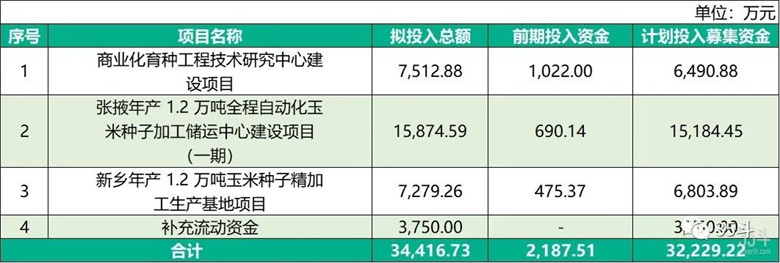 表1:金苑種業(yè)募集資金主要用途(單位:萬元)